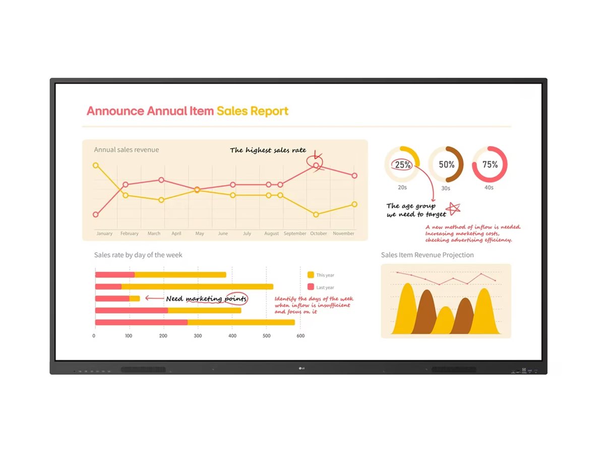 Mit Infrarot-Multitouch-Technologie, die bis zu 40 Berührungspunkte unterstützt, fördert das Display die Zusammenarbeit und eignet sich daher für Gruppenaktivitäten und Bildungszwecke.