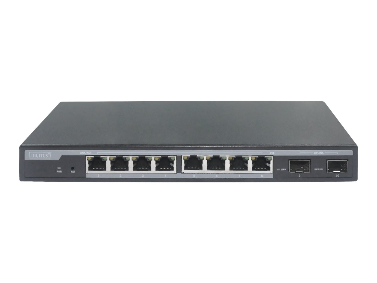 | DIGITUS Professional DN-95344 - Switch - managed - 8 x 10/100/1000 (PoE+) + 2 x Gigabit SFP (Uplink) - Desktop - PoE+ (86 W) | |