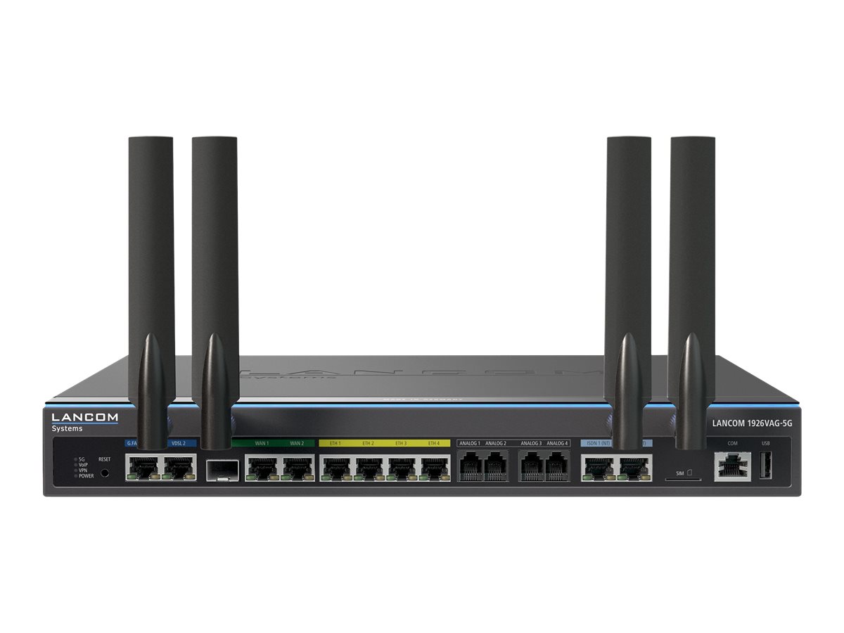 | Produktbeschreibung | LANCOM 1926VAG-5G - Router - ISDN/WWAN/DSL - 5G - Desktop, an Rack montierbar |