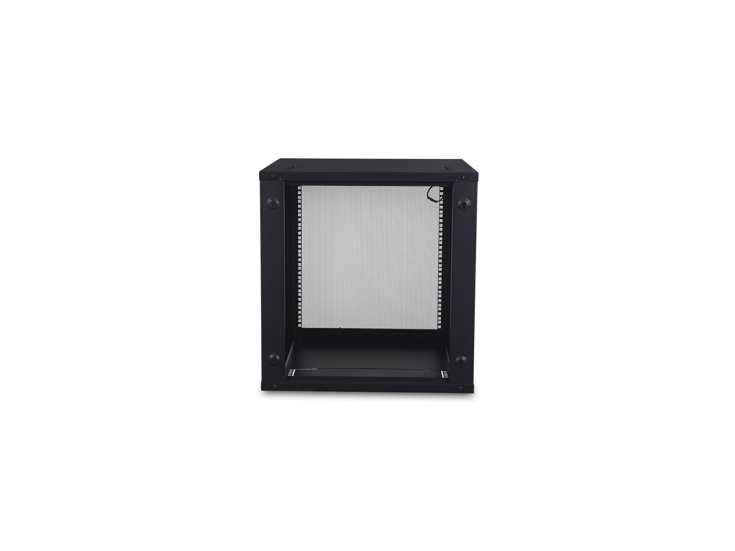 Der Boden und das Dach der Wallbox haben leicht zu entfernende Aussparungen. Diese Aussparungen können für Kabelausgänge oder für die Installation von 1HE-Zubehör, wie z.B. Lüfter oder Patchpanel, verwendet werden. - Einfache Installation des Wandgehäuses
