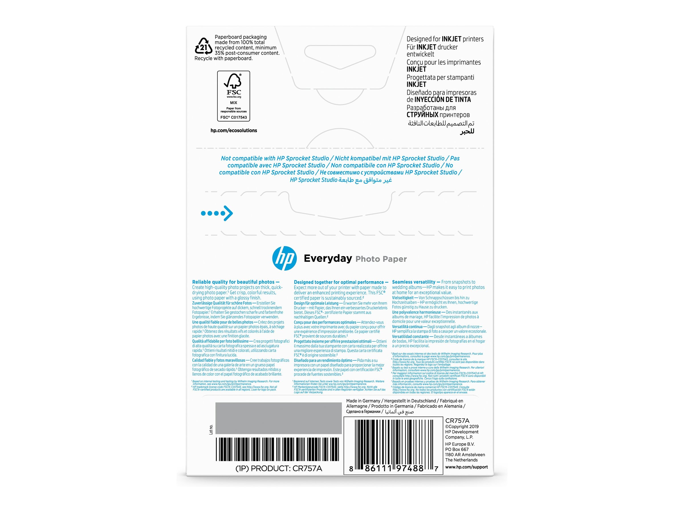 | Produktbeschreibung | HP Everyday Photo Paper - Fotopapier - glänzend - 100 Blatt - 100 x 150 mm - 200 g/m² |